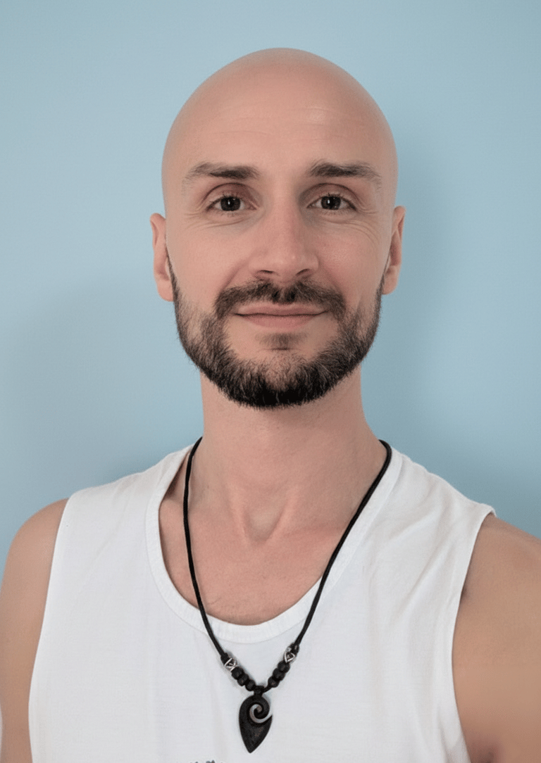 I'm Maté, a somatic practitioner specializing in trauma release through bodywork, breathwork, and embodied awareness. My approach bridges Eastern spiritual traditions with Western somatic psychology, honoring both the wisdom in your tissues and the courage to meet what's stored there.